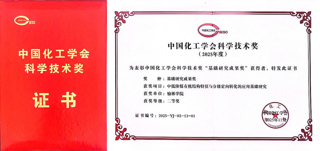 11月21日,中国化工学会第四十一届理事会第五次会议在北京召开,同时颁发了2025年度中国化工学会科学技术奖。我校为第一完成单位、化学与化工学院亢玉红教授为第一完成人开展的“中低阶煤有机结构特征与分级定向转化的应用基础研究”,获得基础研究成果二等奖。此次获奖是我校首次在中国化工学会科学技术奖中斩获荣誉,标志着学校在能源化工领域的基础研究实现突破,对提升学科影响力、推动区域煤炭资源高值化利用具有重要意义。