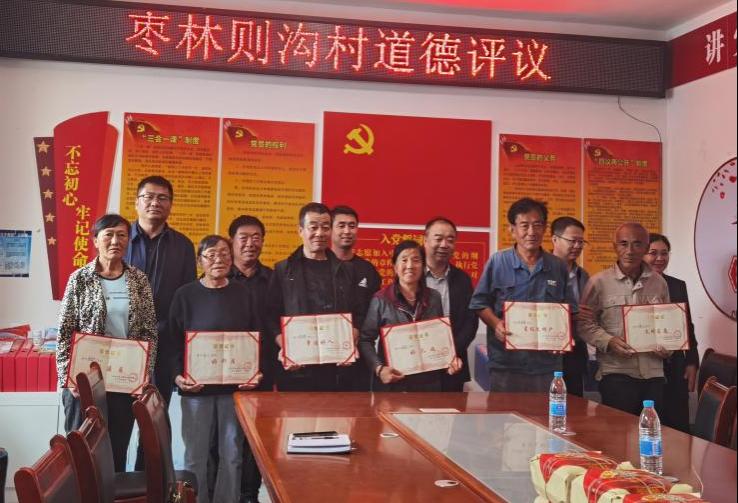 在枣林则沟村,学校与村两委共同组织开展了“道德评议树榜样,文明乡风促振兴”主题活动。通过民主推荐和公开评议,评选出“文明家庭”“星级文明户”“好儿媳”“好邻居”“好婆婆”等一批群众身边的先进典型。卜耀军为获奖者颁发荣誉证书,并在讲话中指出,要充分发挥榜样引领作用,积极培育文明乡风,为乡村振兴注入深厚文化内涵与精神动力。