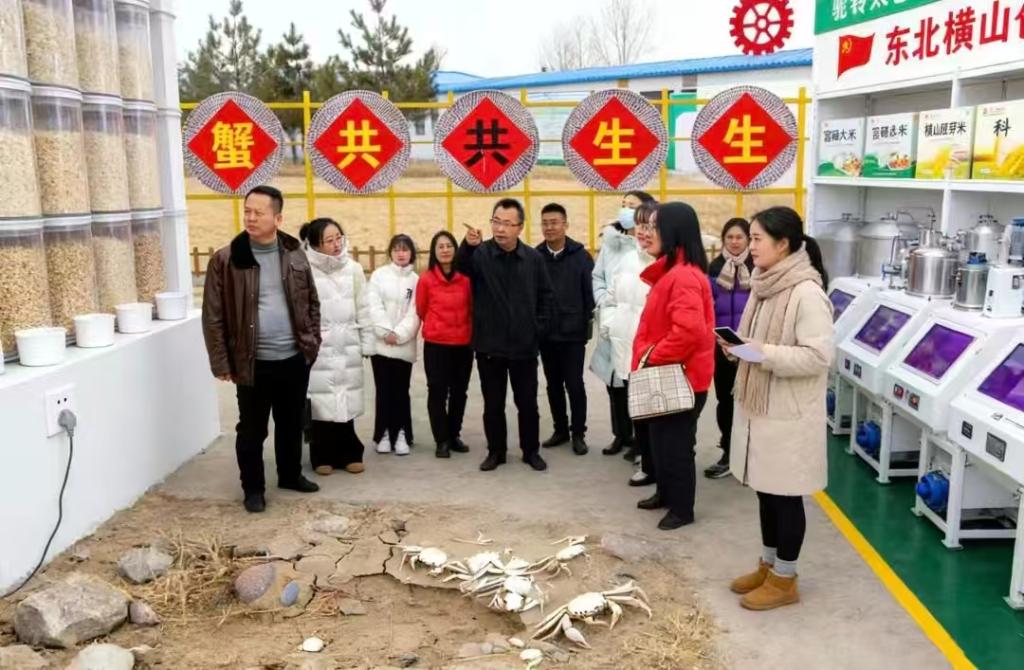 在驼铃大仓的深度调研中,团队与乔俊宏劳模围绕产业发展与校企合作展开热烈探讨。乔俊宏详细介绍了“集团+合作社+基地+农户”的运作模式,重点分享了稻田养蟹的创新实践——该模式既减少了化肥农药的使用,又实现了每亩地增收,如今螃蟹收益已超过水稻本身。队员们还深入养殖基地和生产车间,细致核查生态环境与循环养殖体系,并现场取样采集数据,为后续技术优化积累了宝贵的第一手资料。交流中,李醉海教授围绕“产业与教育深度融合”提出构想,建议将养殖技术、品牌故事融入课堂教学,这一想法得到乔俊宏的高度认可,双方就此达成乡土文创开发、研学线路设计的初步合作意向。