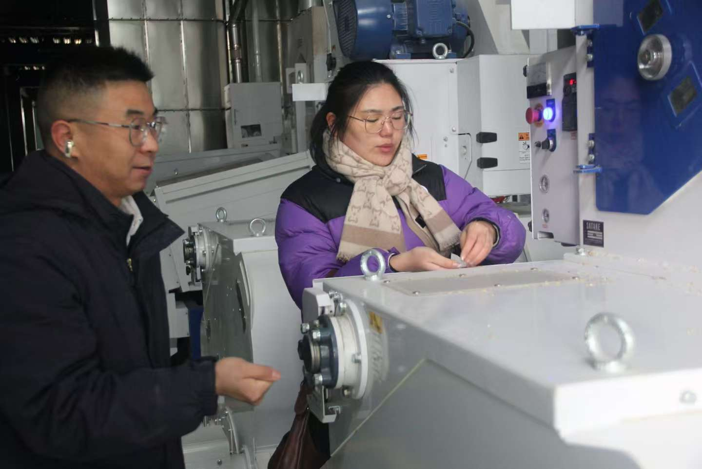 随后,团队移步现代化粮食加工生产车间,全程观摩稻谷加工的智能化全流程操作,深刻感受现代农业加工的标准化与精细化水准。在产品陈列区,队员们详细了解富硒大米、横山贡米的培育技术与品牌价值,为后续课程开发筑牢实物与场景基础;在“藏粮于地”主题展示区,大家结合国家粮食安全战略与当地高标准农田建设成果展开深入交流,真切领会本土农业产业的振兴之道。