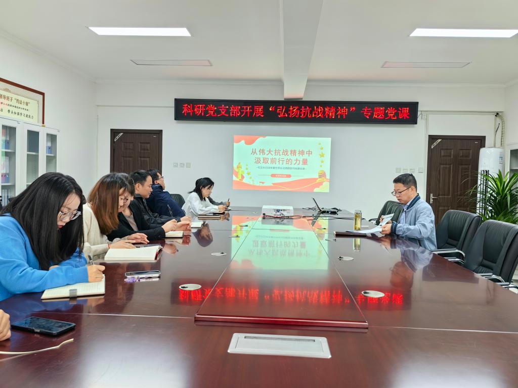 为纪念中国人民抗日战争暨世界反法西斯战争胜利80周年,科研党支部于2025年9月22日组织全体党员开展“弘扬抗日精神”专题党课活动。活动通过理论学习和实践研讨相结合的形式,引导党员教师铭记历史、传承精神,推动红色基因融入教学科研工作。